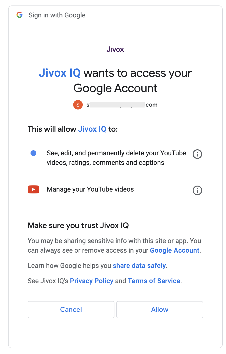 11- Click Allow to complete the authentication process. Once the authentication process is complete, the upload process will commence. (This might take upto a few minutes depending on the number of videos.)