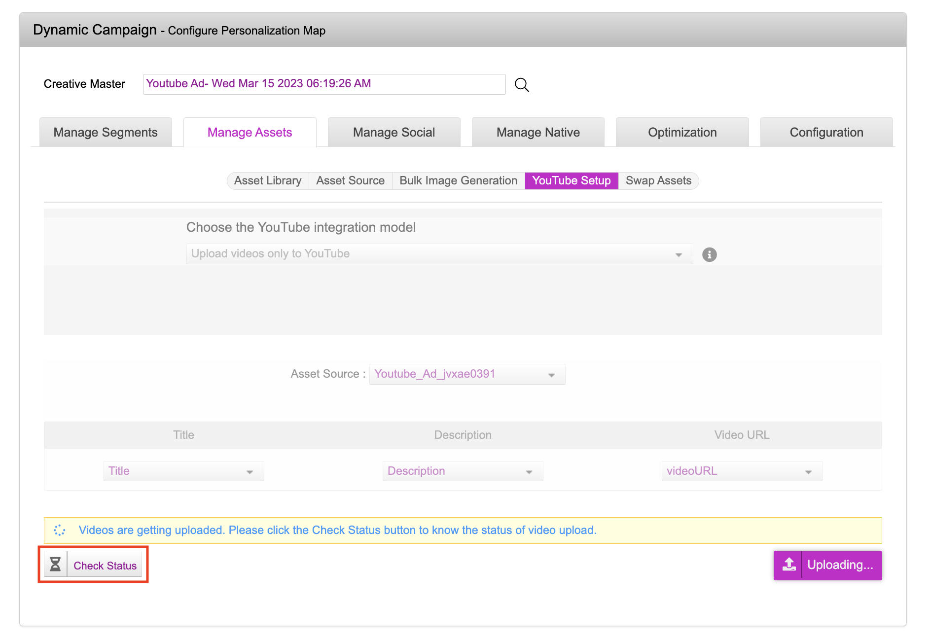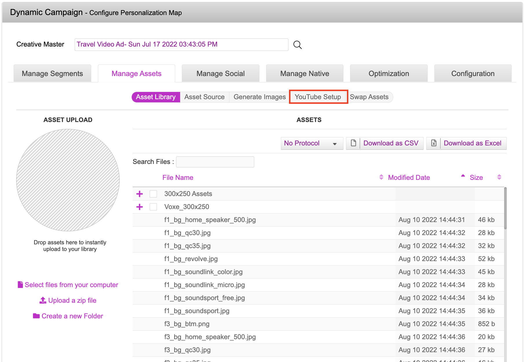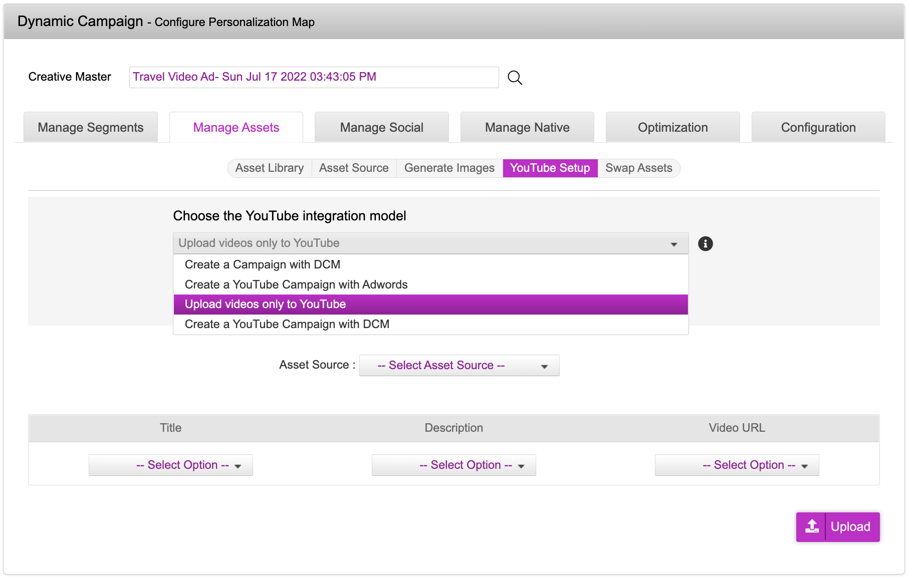 Once the campaign is saved, we must configure the parameters for Youtube Setup. Let's proceed.
