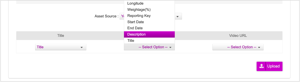 Now, we must map the columns in the Asset Source to the respective column headers here.