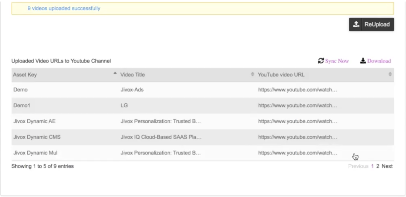 12- You can click the Check Status button to check the status of the upload. You will see a list of all the videos.