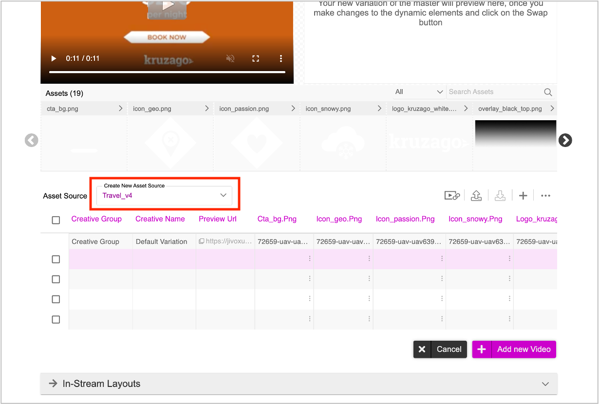 Once the Asset Source is created, you can go ahead and generate the Creative Variations. You can generate creative variations in two different ways.