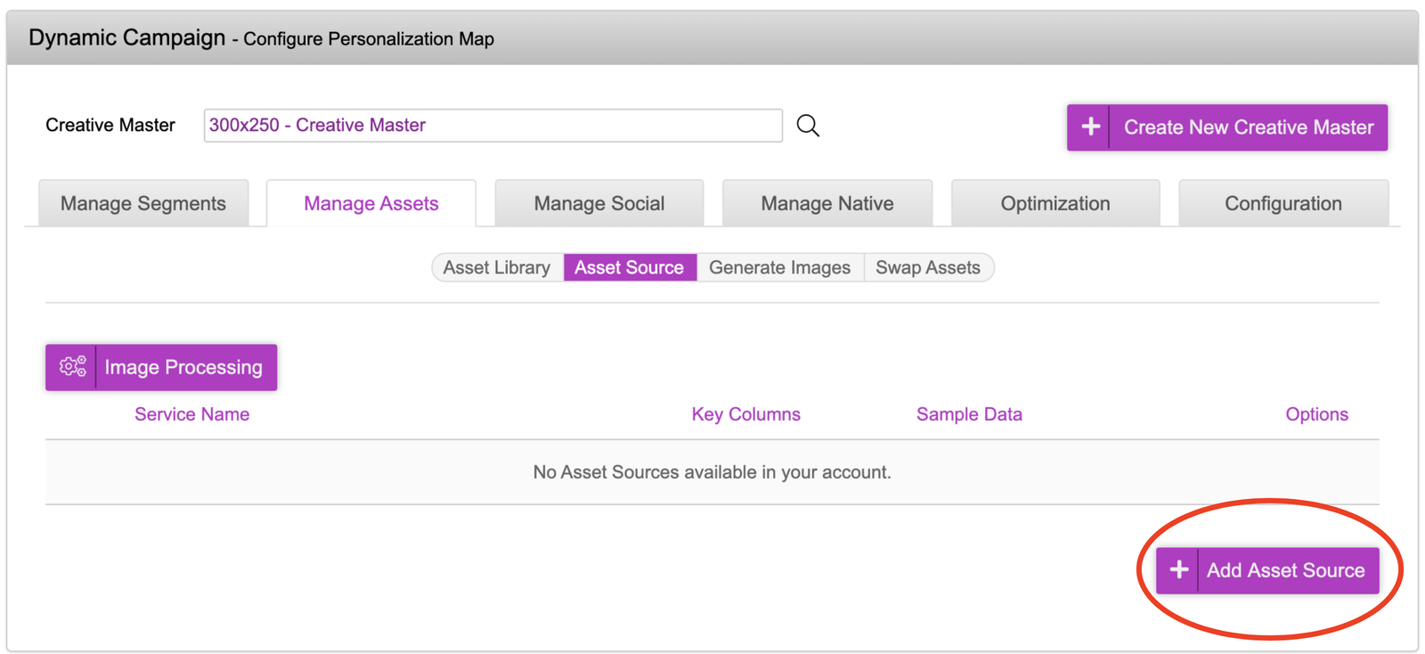 - Inside the ‘Asset Source’ tab, click ‘Add Asset Source’.