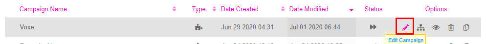 - Once the Campaign has been saves, under the campaign section, click the pencil icon to edit the campaign
