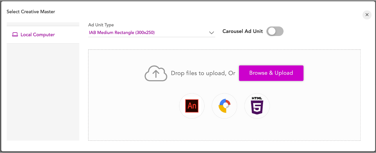 6- Next, you can either drag-and-drop the Creative Master file here or click Browse & Upload.