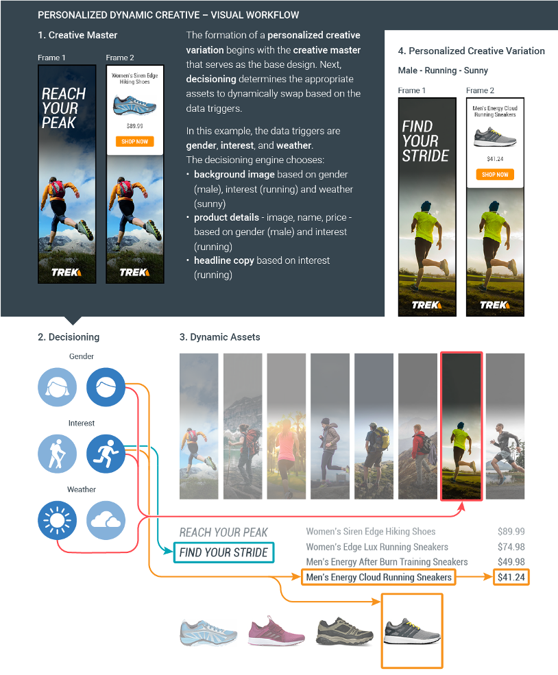 Here's a snippet of the workflow for creating personalized creative variation using Jivox IQ.