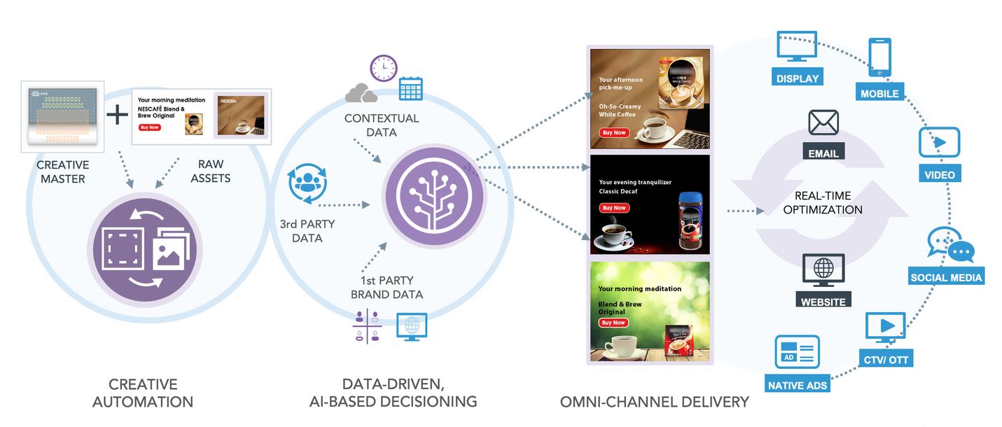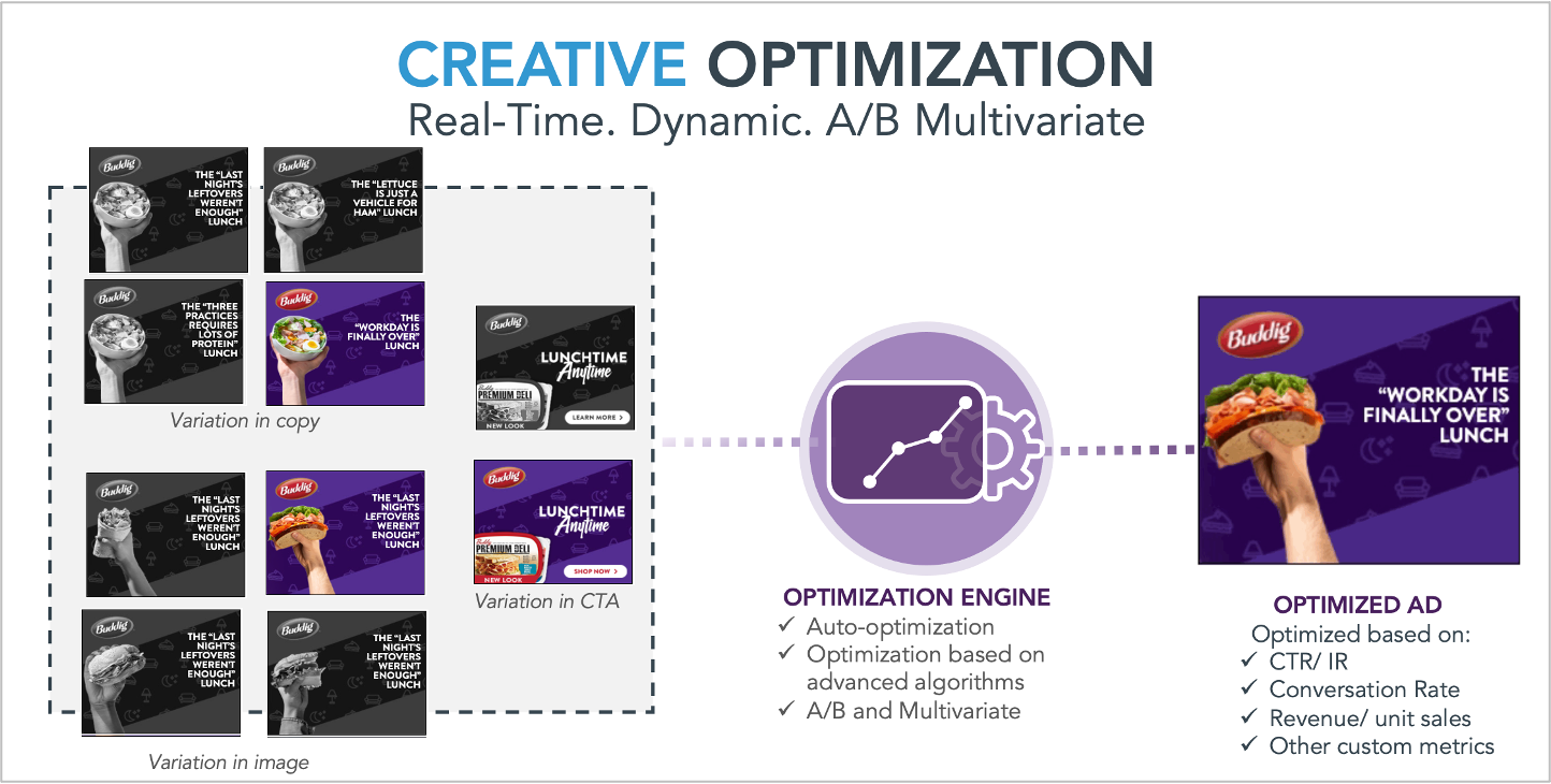 The AI-Powered DecisionGraph technology enables you to leverage data pulled from several sources to determine the most relevant creative variation for an audience segment and accordingly serve the most appropriate variation of the Ad across different channels.